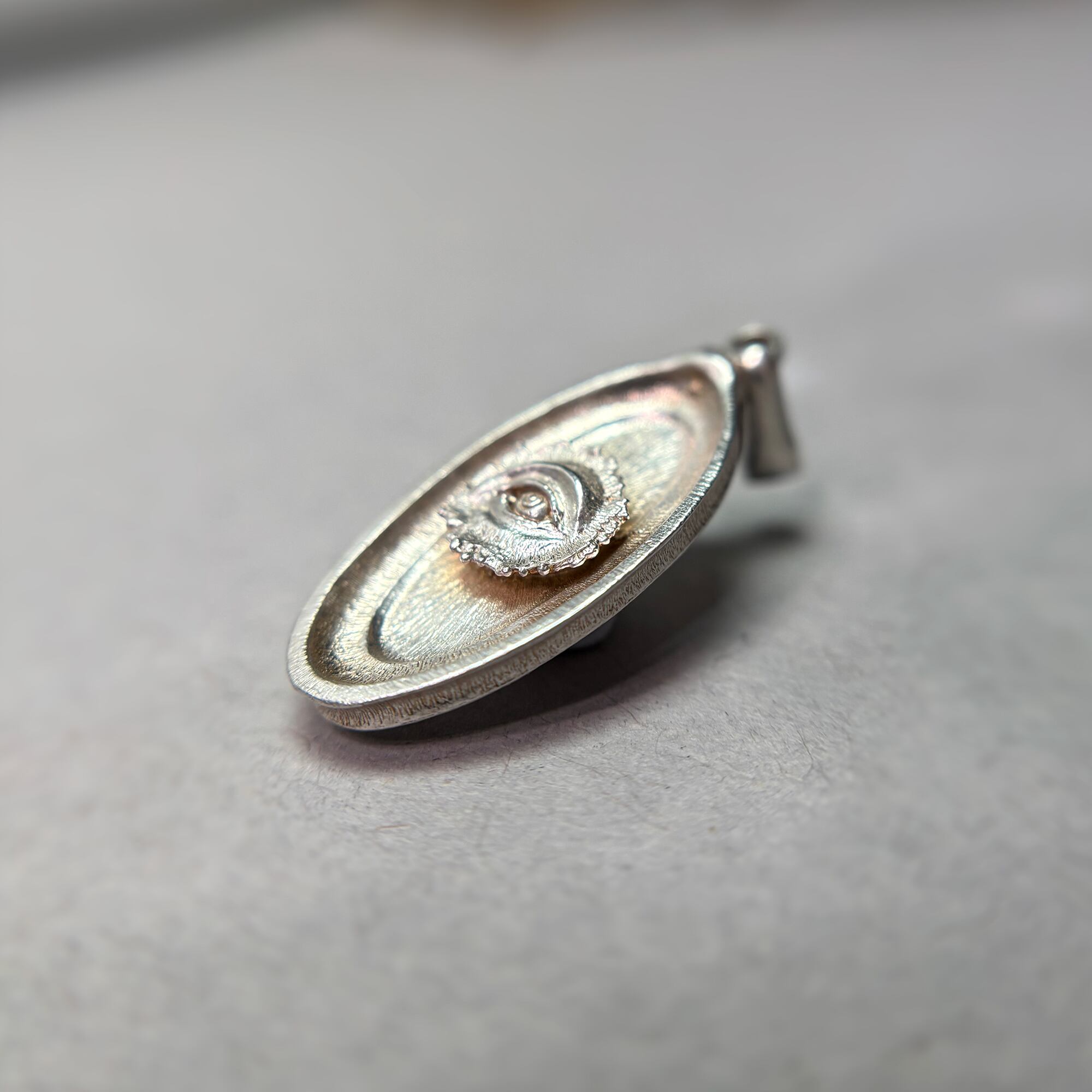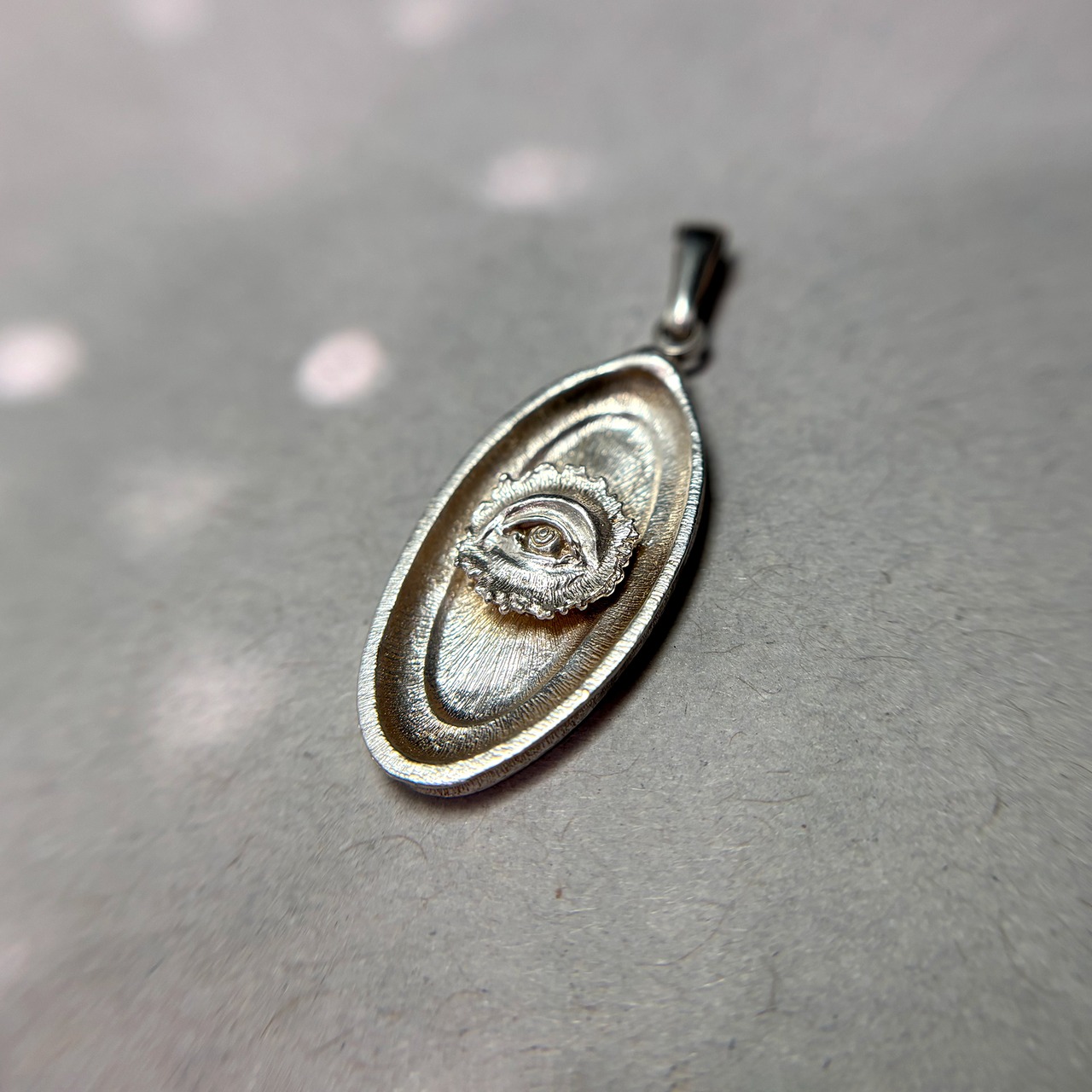 後光に飾られた、小さな目元が彫刻されたペンダントです。